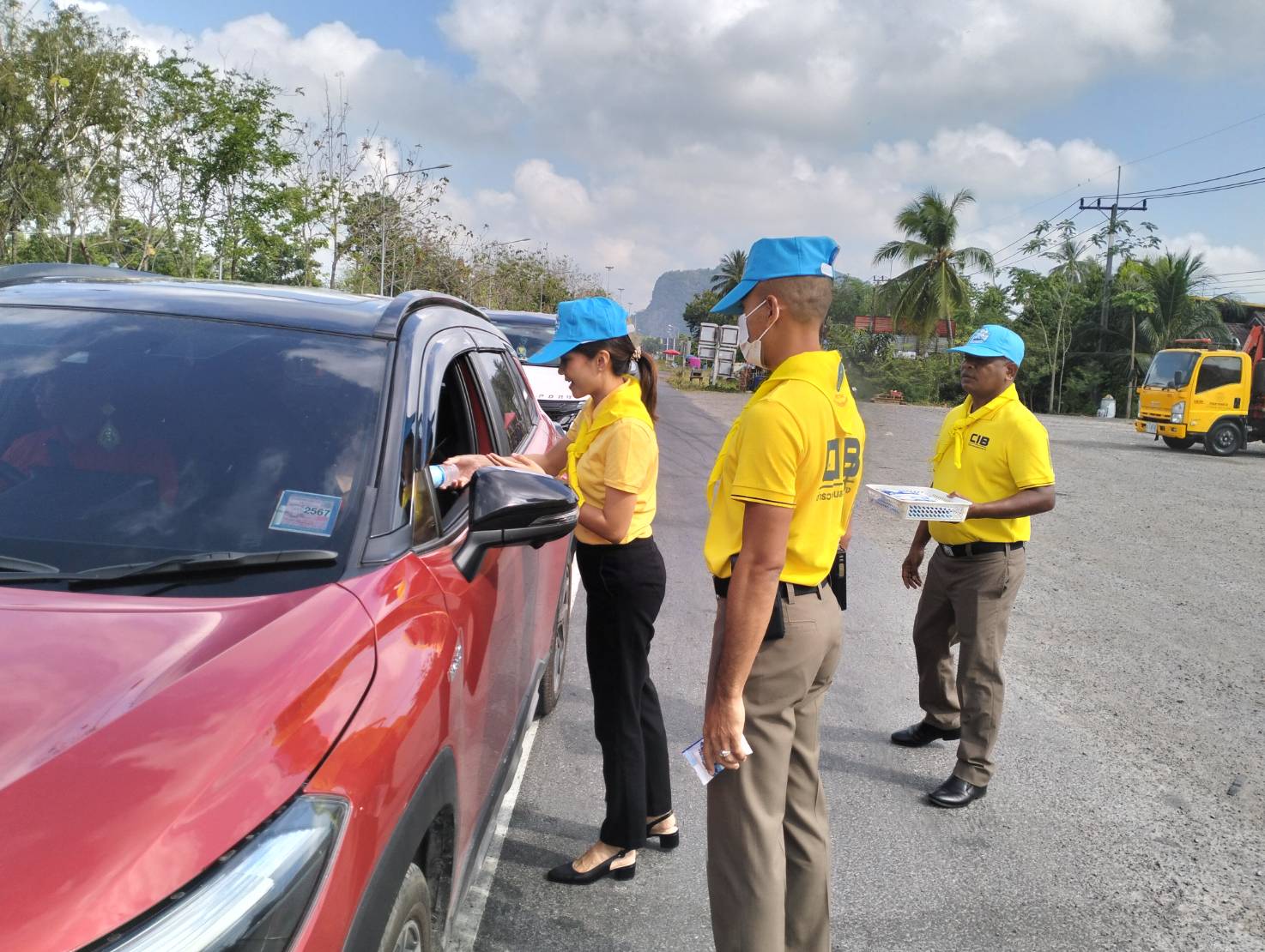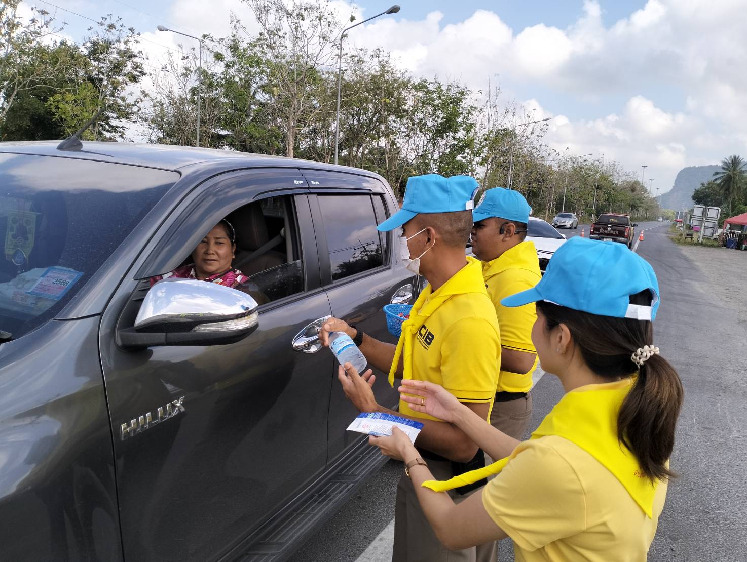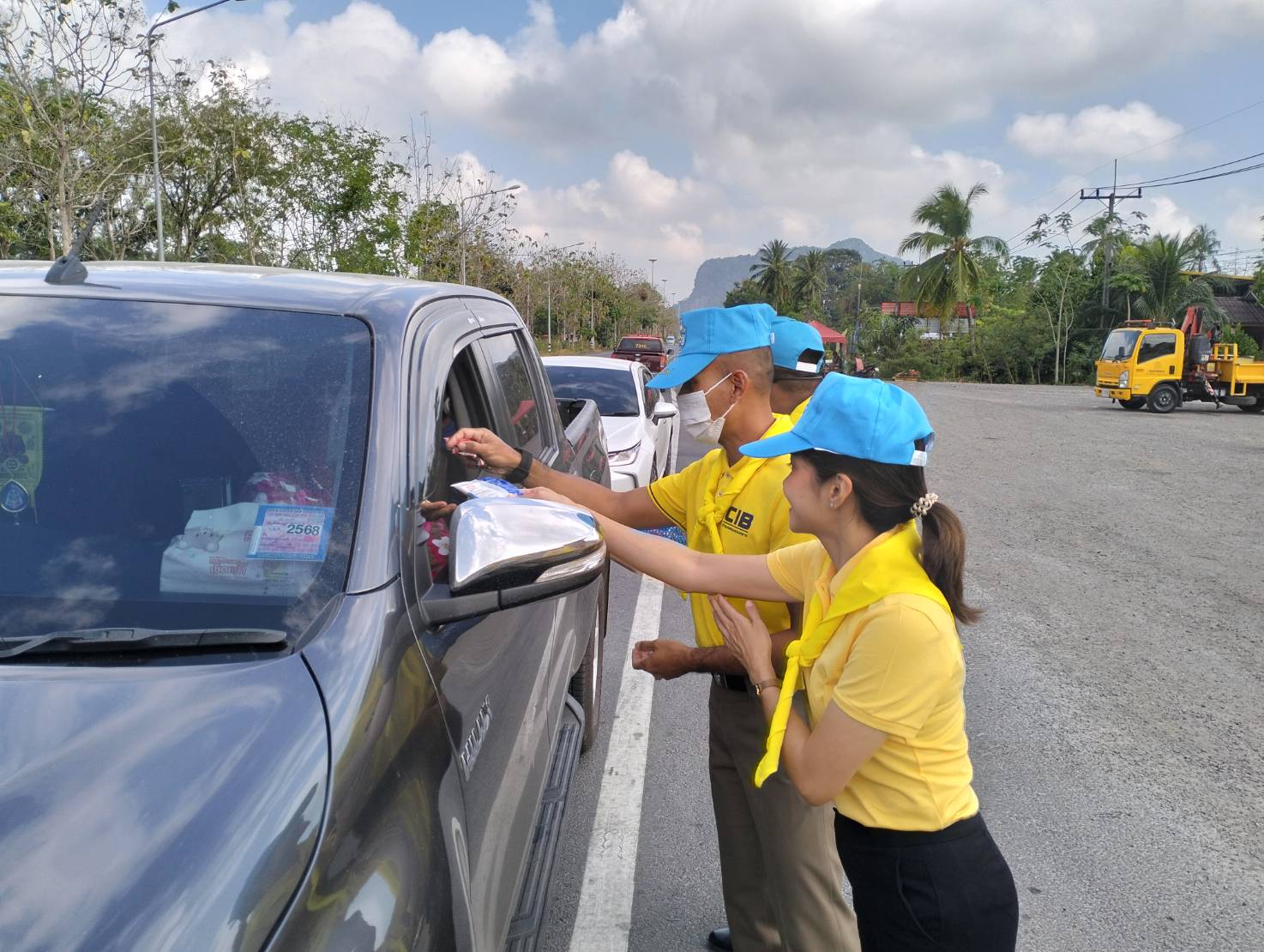 พ.ต.ต.วิชัย โมฆรัตน์ สว.ส.ทล.2 กก.7 บก.ทล.พร้อมเจ้าหน้าที่ตำรวจทางหลวงร่วมกันทำจิตอาสา ด้วยการแจกเครื่องดื่มให้กับประชาชนที่เดินทางในช่วงเทศกาลสงกรานต์ 2567 บริเวณหน้าหน่วยบริการประชาชนตำรวจทางหลวงพัทลุง